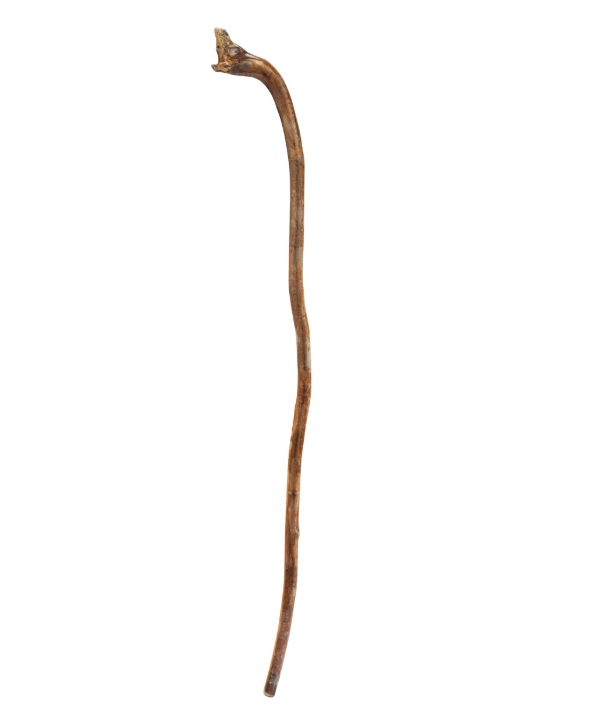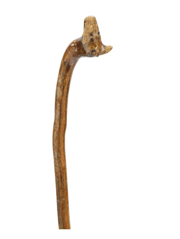 The face of a surprised pooch emerges from the handle of this visually intriguing folk art cane